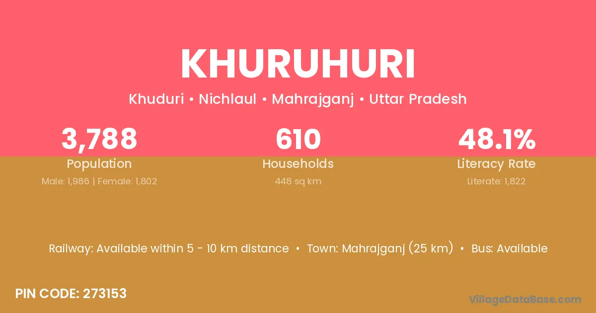 Mahrajganj (25 km) is the nearest town to Khuruhuri village for major economic activities and is located approximately 25 km away.