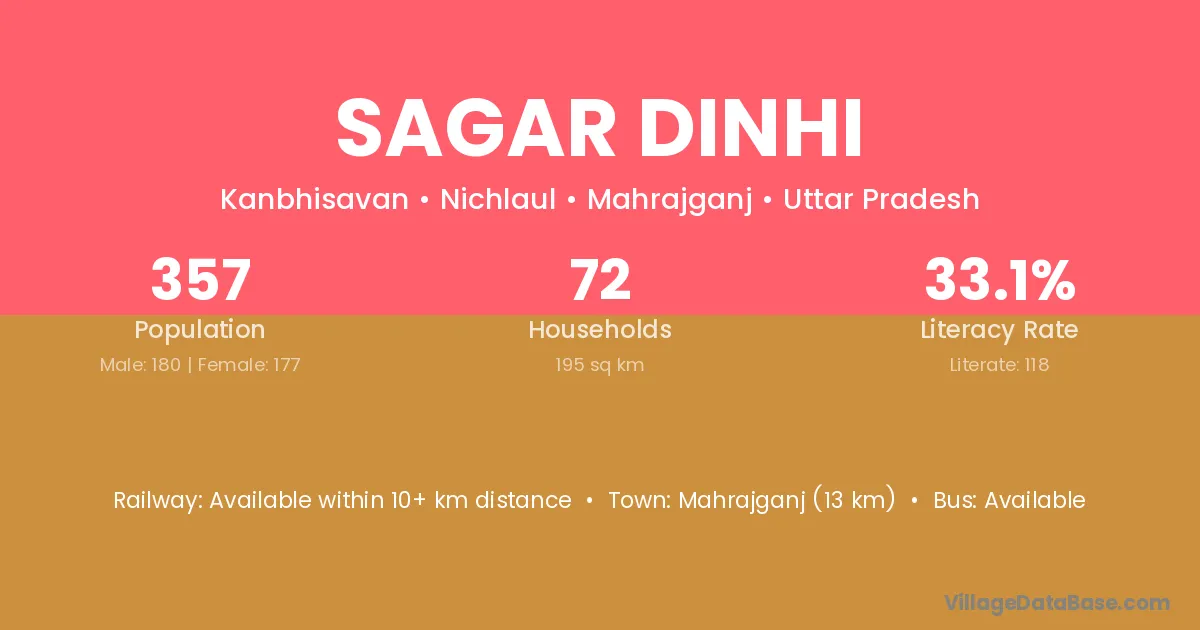 Mahrajganj (13 km) is the nearest town to Sagar Dinhi village for major economic activities and is located approximately 13 km away.