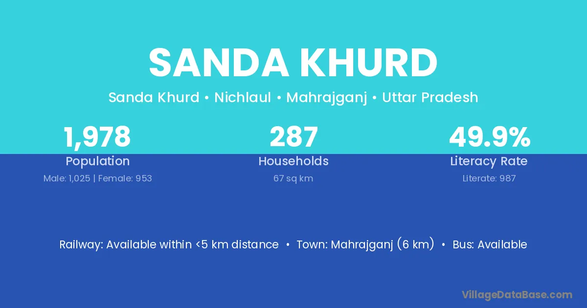 Mahrajganj (6 km) is the nearest town to Sanda Khurd village for major economic activities and is located approximately 6 km away.