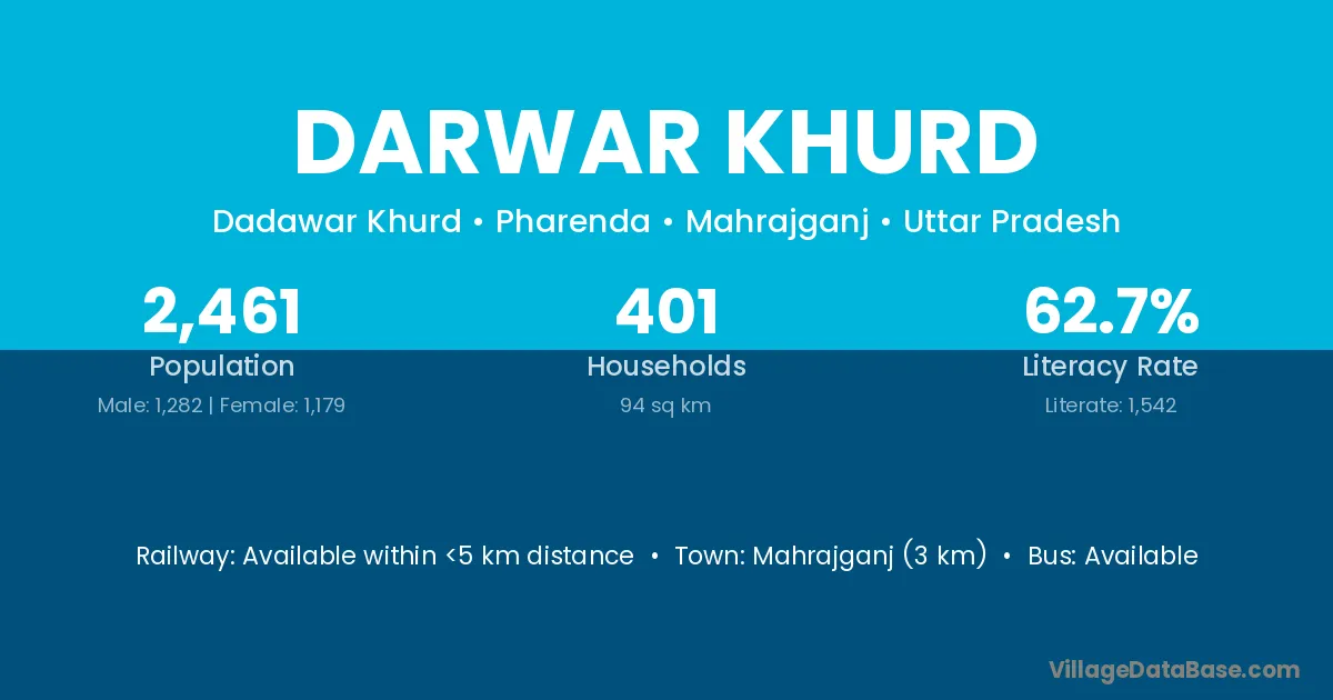 Mahrajganj (3 km) is the nearest town to Darwar Khurd village for major economic activities and is located approximately 3 km away.
