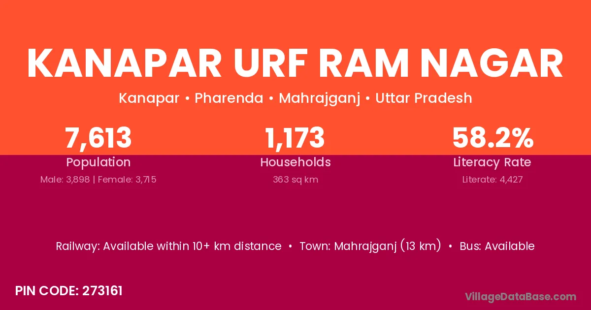 Mahrajganj (13 km) is the nearest town to Kanapar Urf Ram Nagar village for major economic activities and is located approximately 13 km away.