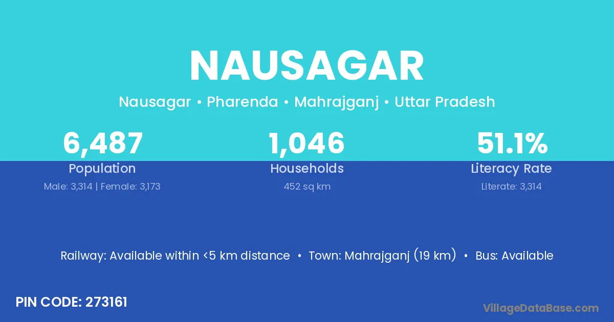 Mahrajganj (19 km) is the nearest town to Nausagar village for major economic activities and is located approximately 19 km away.