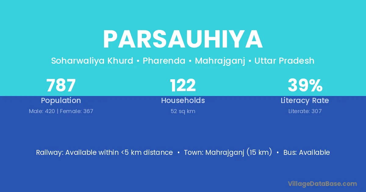 Mahrajganj (15 km) is the nearest town to Parsauhiya village for major economic activities and is located approximately 15 km away.