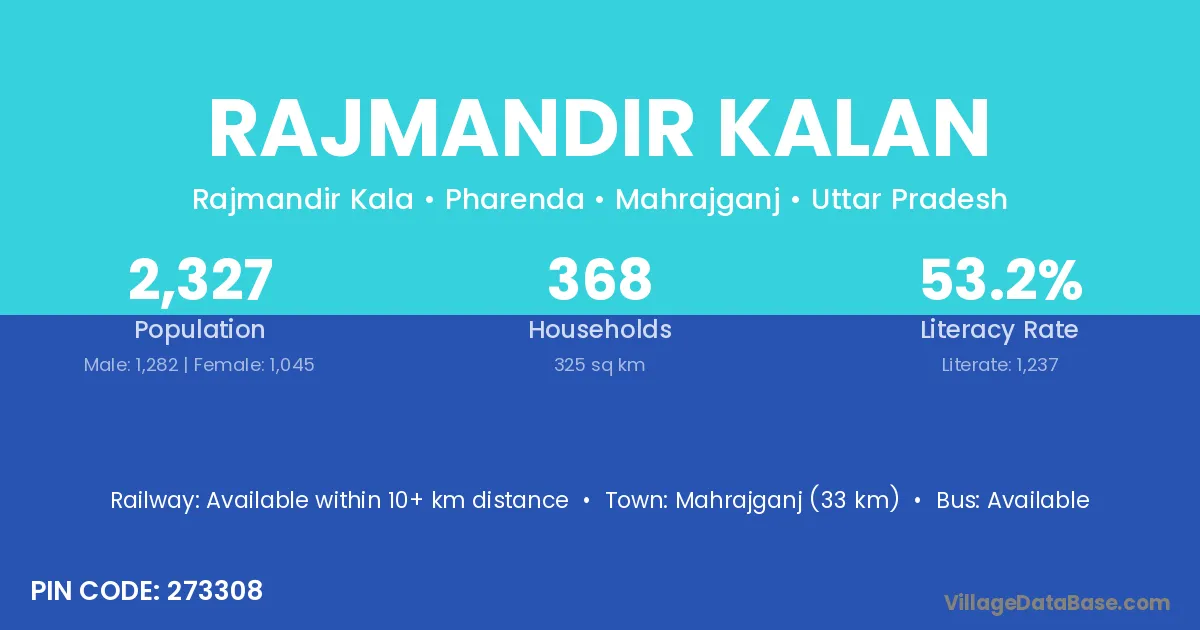 Mahrajganj (33 km) is the nearest town to Rajmandir Kalan village for major economic activities and is located approximately 33 km away.