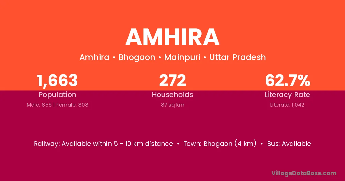 Bhogaon (4 km) is the nearest town to Amhira village for major economic activities and is located approximately 4 km away.