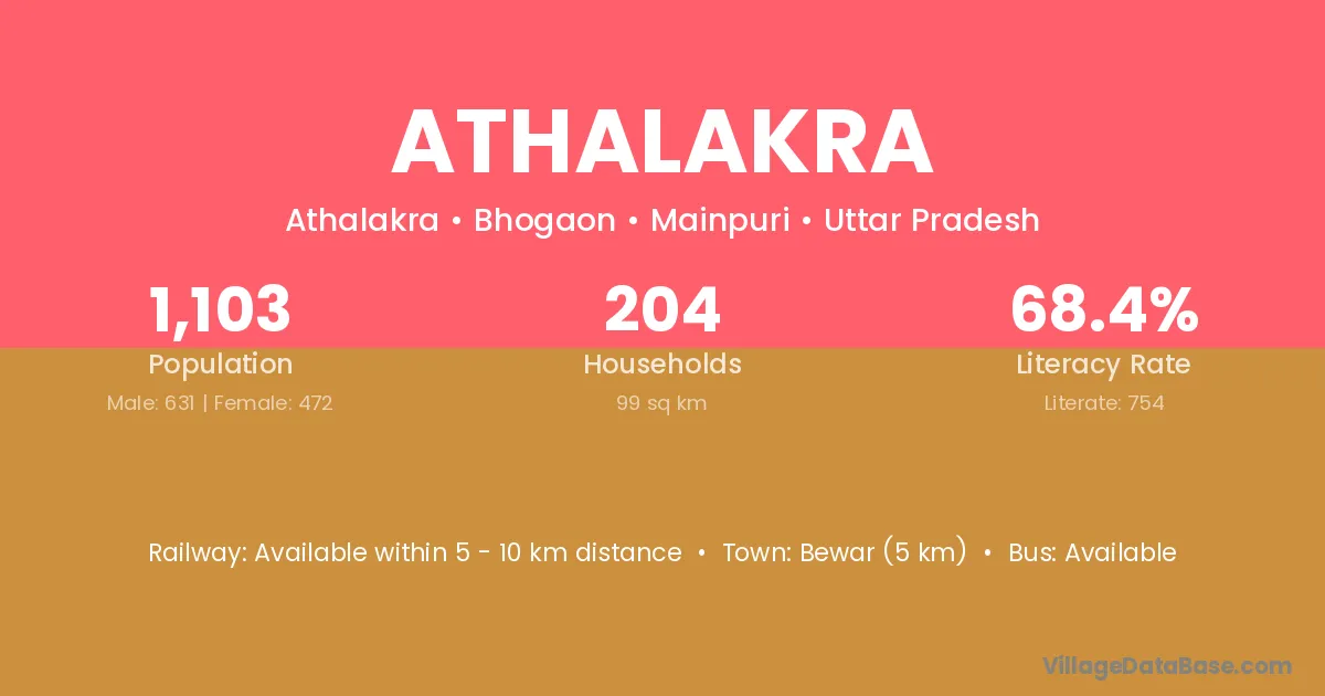 Bewar (5 km) is the nearest town to Athalakra village for major economic activities and is located approximately 5 km away.