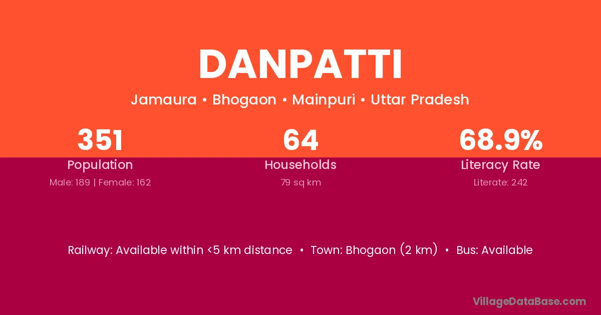 Danpatti village has a total population of 351 people, of which 189 are males and 162 are females.