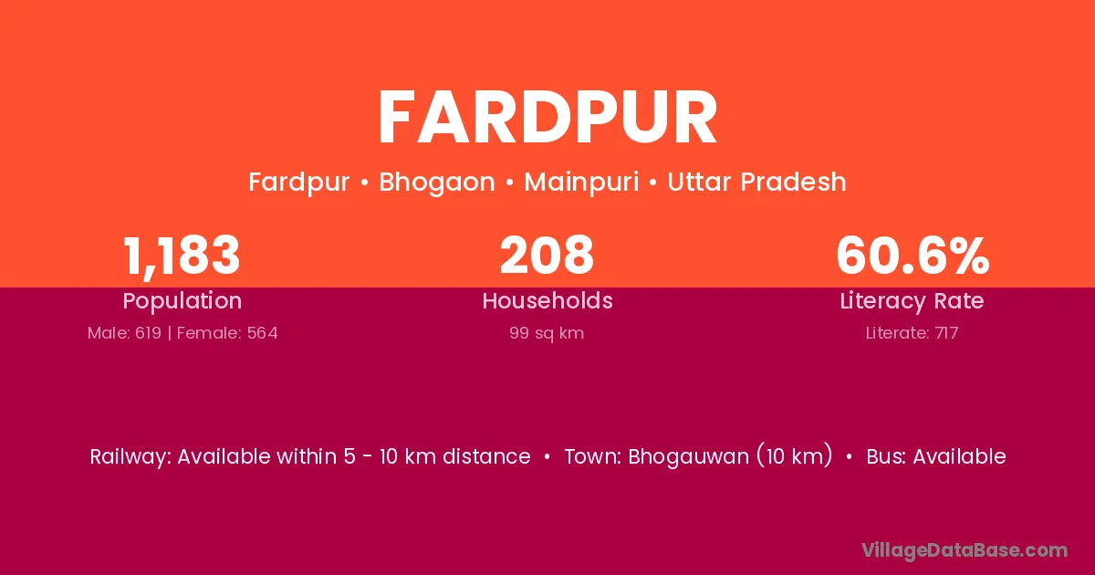 Bhogauwan (10 km) is the nearest town to Fardpur village for major economic activities and is located approximately 10 km away.