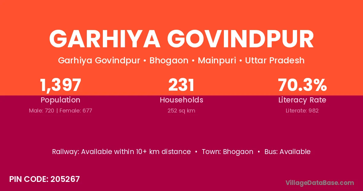 There are approximately 231 households in Garhiya Govindpur village.
