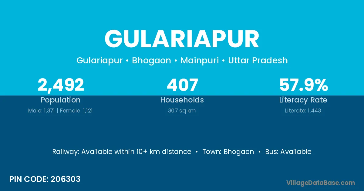 According to Census 2011 information, the village code of Gulariapur village is 206303.