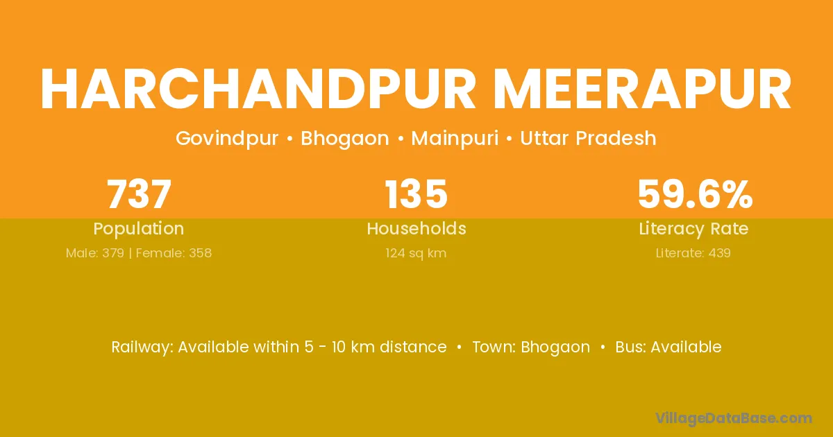 Harchandpur Meerapur village has a total population of 737 people, of which 379 are males and 358 are females.