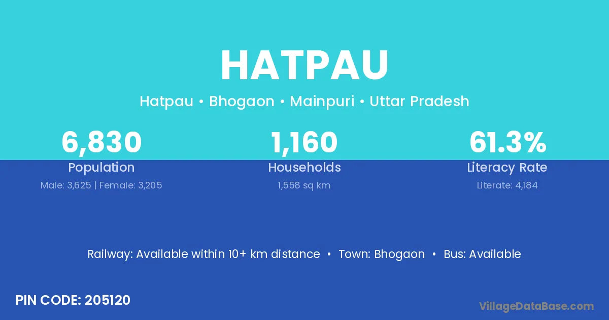 Hatpau village has a total population of 6,830 people, of which 3,625 are males and 3,205 are females.