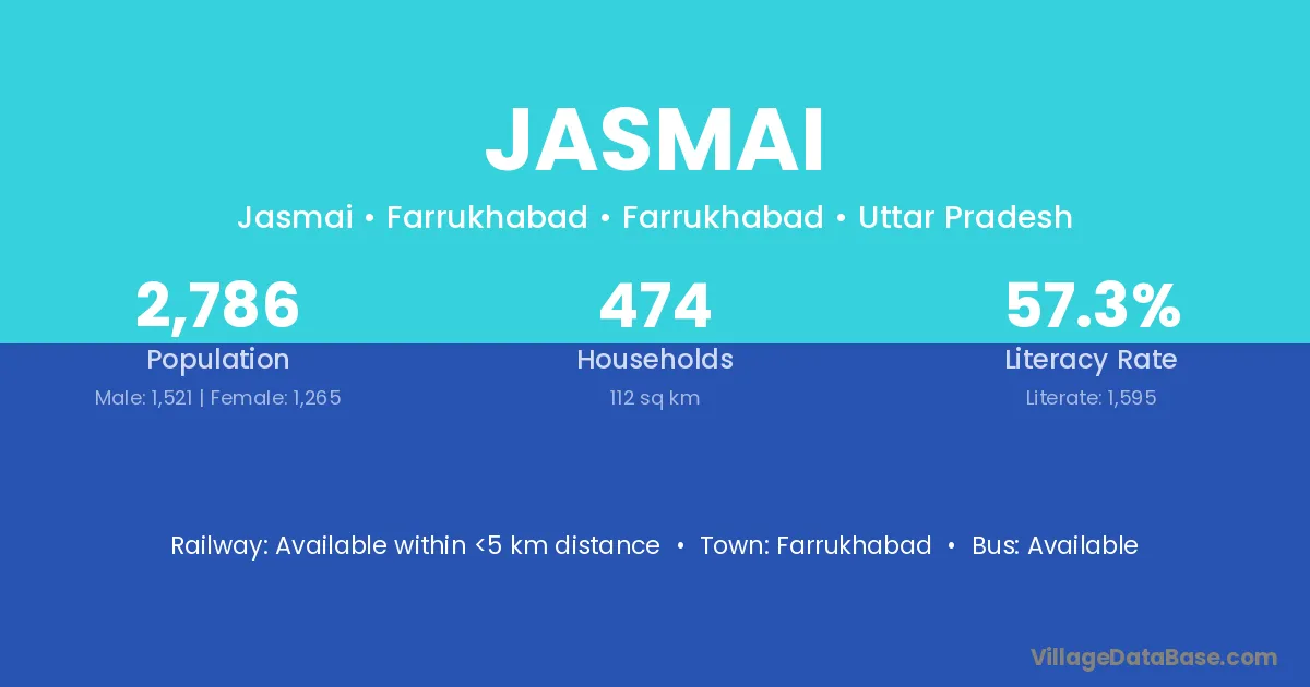 Mainpuri (49 km) is the nearest town to Jasmai village for major economic activities and is located approximately 49 km away.