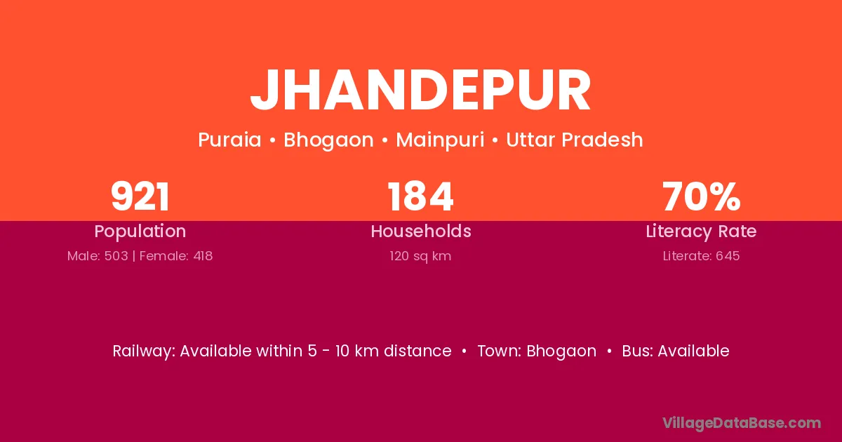 Jhandepur village has a total population of 921 people, of which 503 are males and 418 are females.