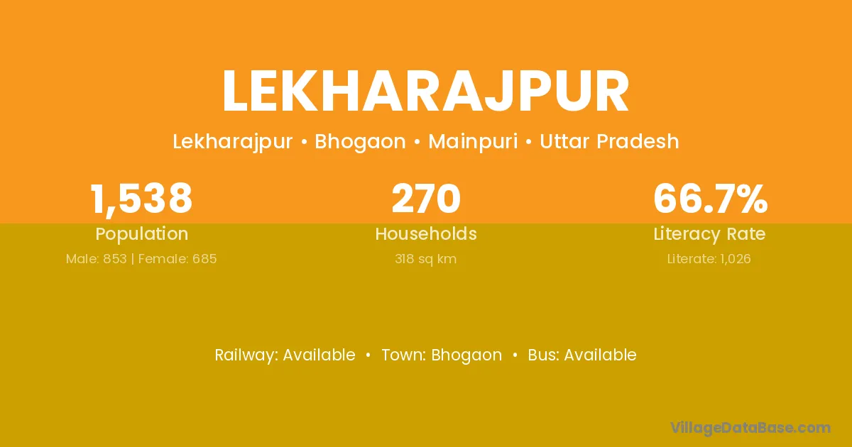 Lekharajpur village has a total population of 1,538 people, of which 853 are males and 685 are females.