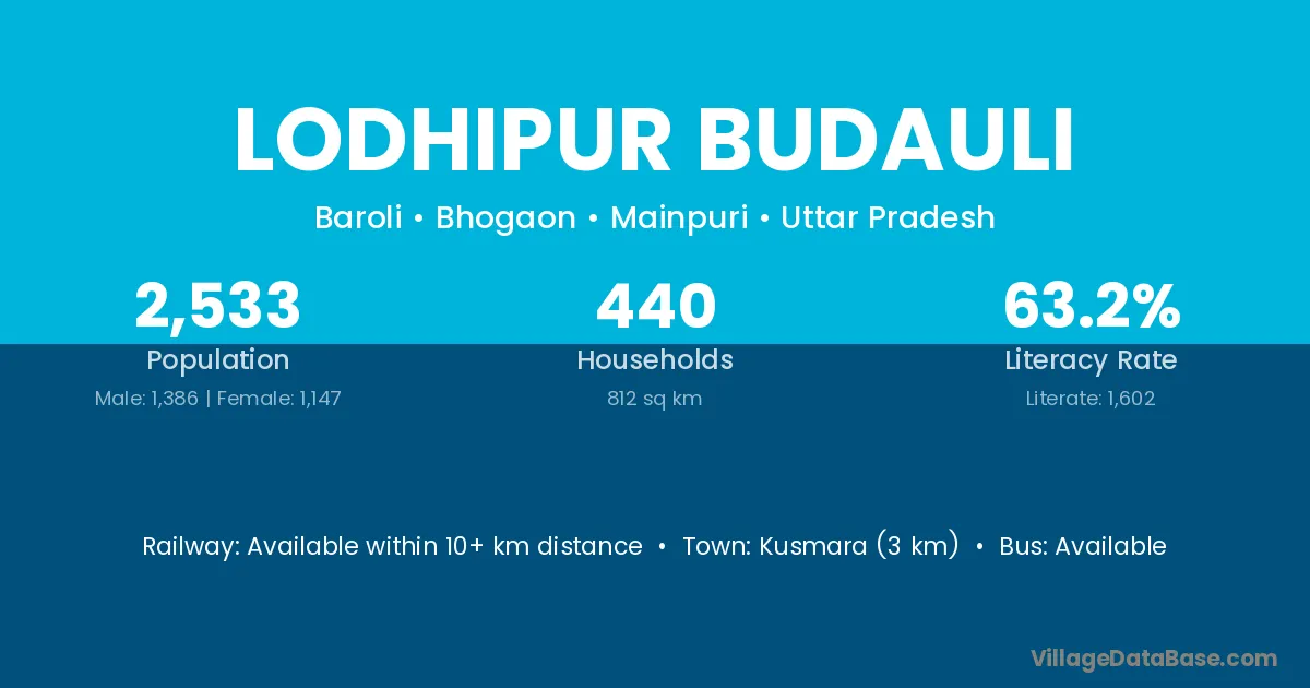 Kusmara (3 km) is the nearest town to Lodhipur Budauli village for major economic activities and is located approximately 3 km away.