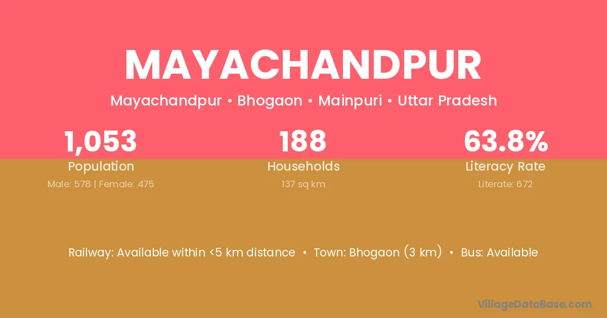 Bhogaon (3 km) is the nearest town to Mayachandpur village for major economic activities and is located approximately 3 km away.