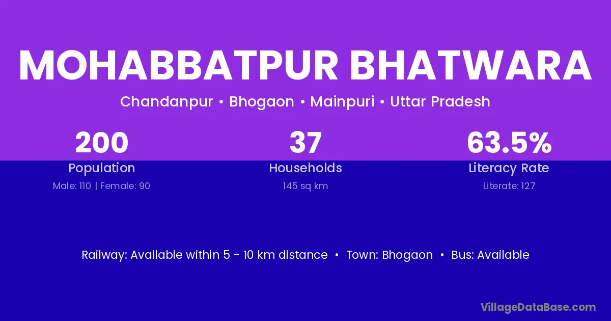 Mohabbatpur Bhatwara village has a total population of 200 people, of which 110 are males and 90 are females.