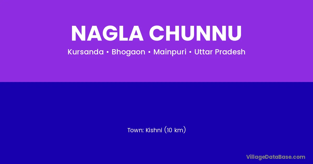 Kishni (10 km) is the nearest town to Nagla Chunnu village for major economic activities and is located approximately 10 km away.