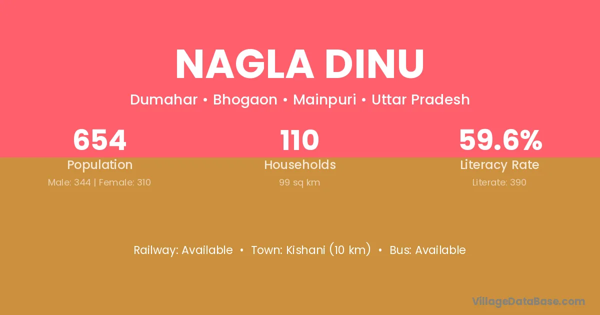 Nagla Dinu village has a total population of 654 people, of which 344 are males and 310 are females.