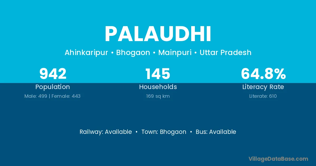 Palaudhi village has a total population of 942 people, of which 499 are males and 443 are females.