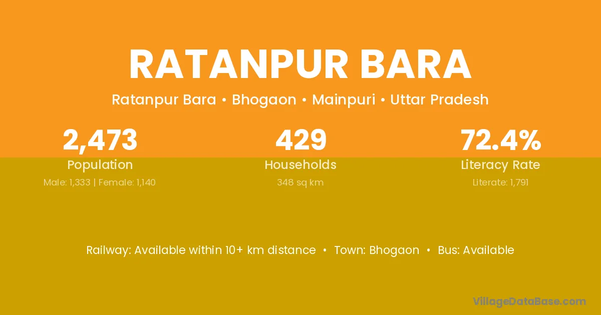 Ratanpur Bara village has a total population of 2,473 people, of which 1,333 are males and 1,140 are females.