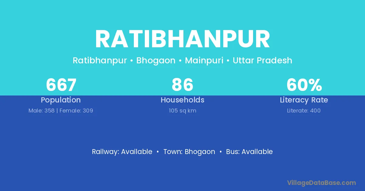 Ratibhanpur village has a total population of 667 people, of which 358 are males and 309 are females.