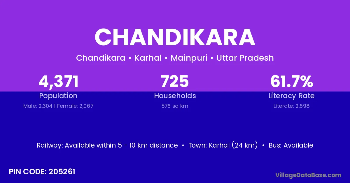 Karhal (24 km) is the nearest town to Chandikara village for major economic activities and is located approximately 24 km away.