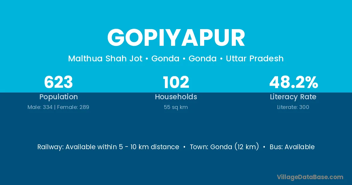 Gopiyapur village has a total population of 1,198 people, of which 632 are males and 566 are females.
