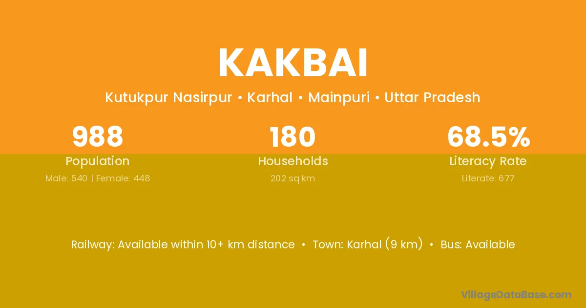 Karhal (9 km) is the nearest town to Kakbai village for major economic activities and is located approximately 9 km away.