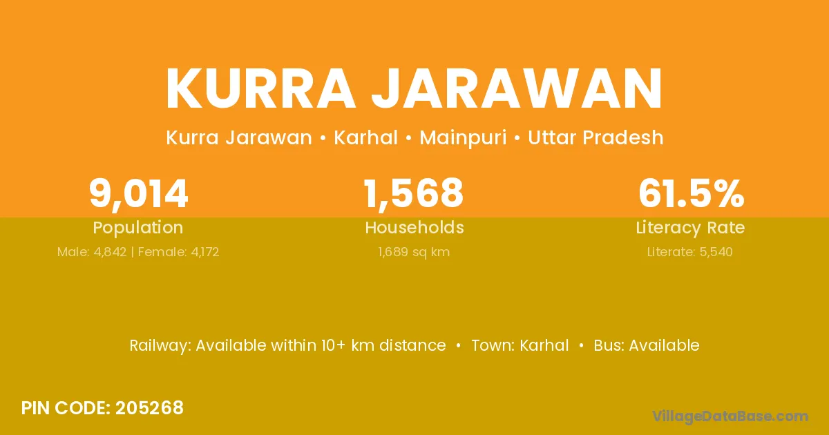 Karhal is the nearest town to Kurra Jarawan village for major economic activities