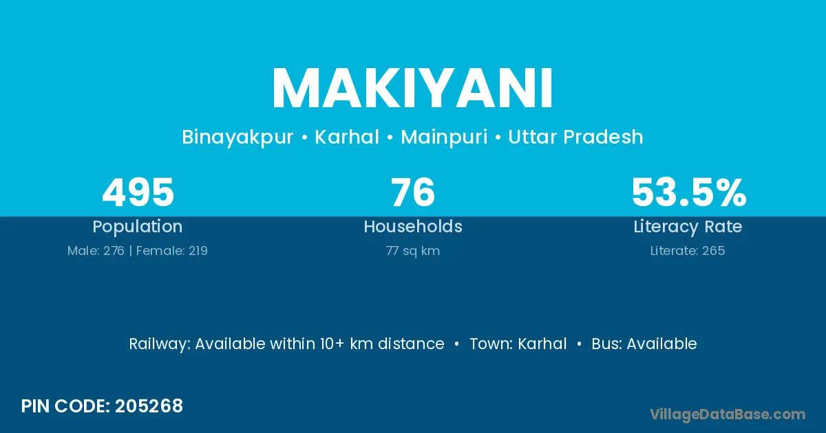 Karhal is the nearest town to Makiyani village for major economic activities