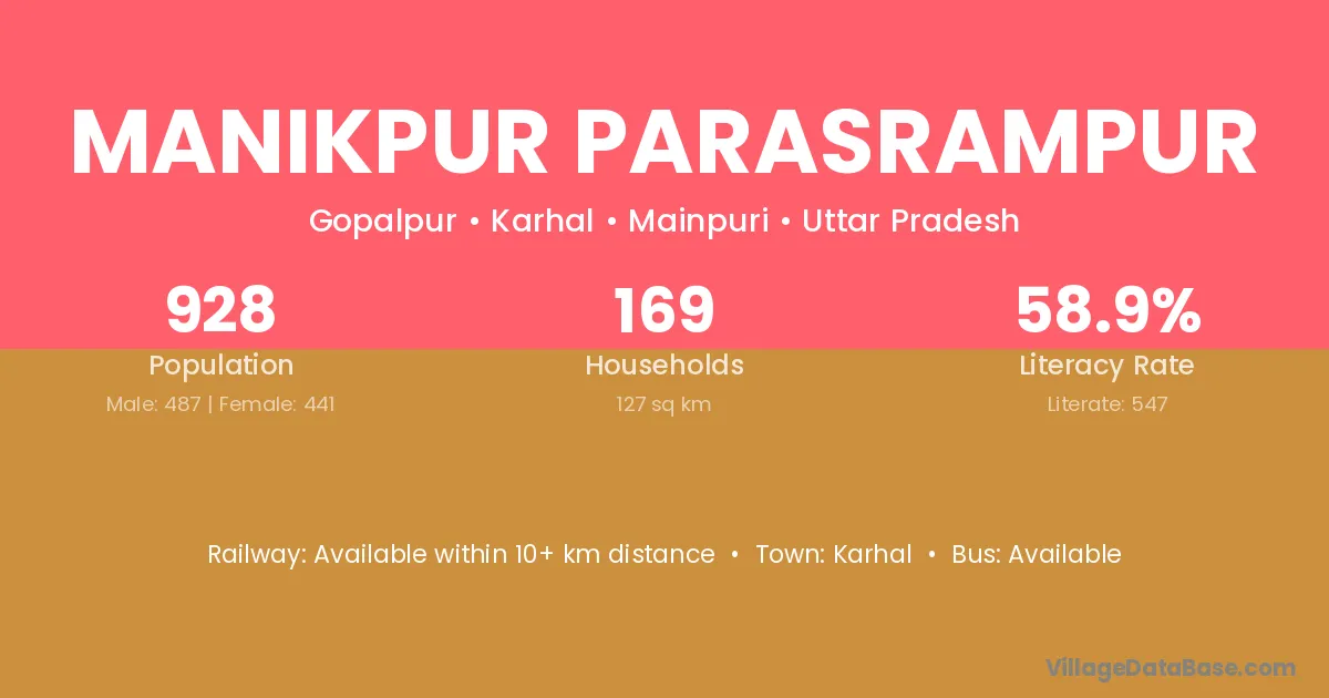 Karhal is the nearest town to Manikpur Parasrampur village for major economic activities