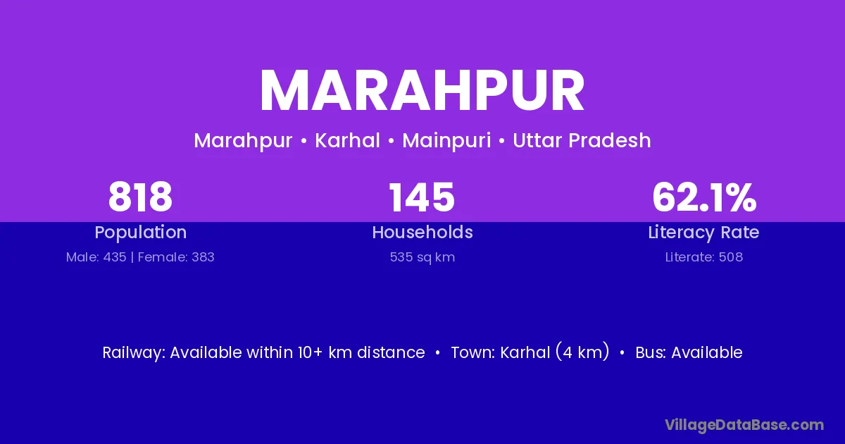Karhal (4 km) is the nearest town to Marahpur village for major economic activities and is located approximately 4 km away.