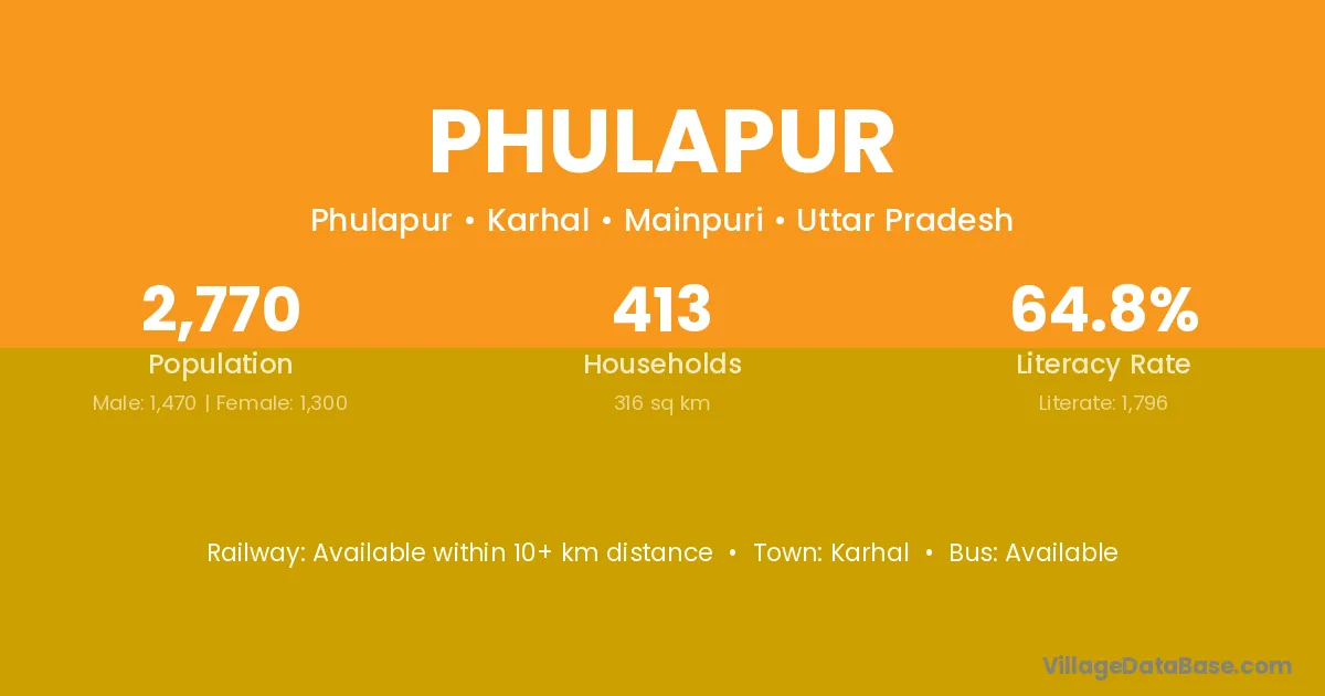 Karhal is the nearest town to Phulapur village for major economic activities