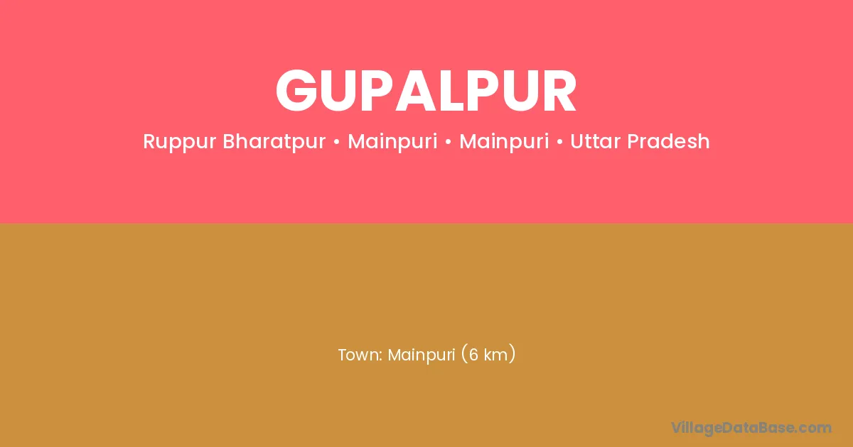 Mainpuri (6 km) is the nearest town to Gupalpur village for major economic activities and is located approximately 6 km away.