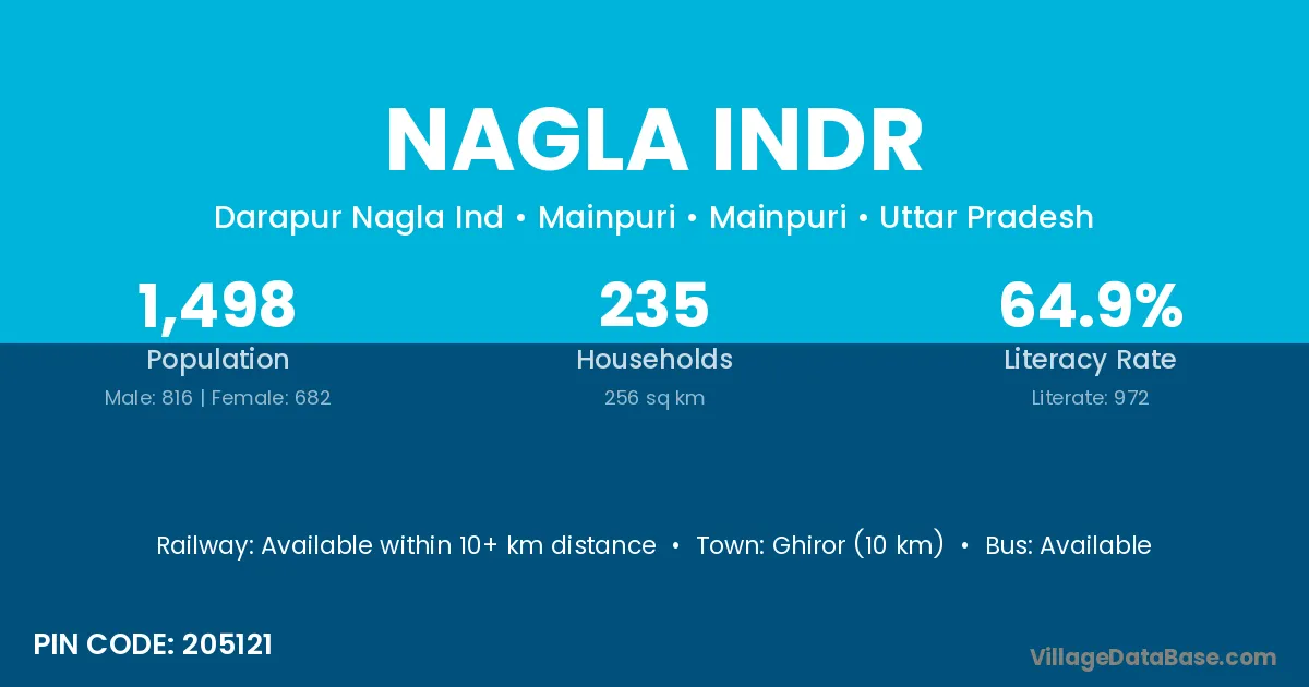 Ghiror (10 km) is the nearest town to Nagla Indr village for major economic activities and is located approximately 10 km away.