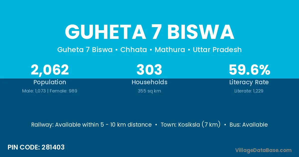 Kosiksla (7 km) is the nearest town to Guheta 7 Biswa village for major economic activities and is located approximately 7 km away.