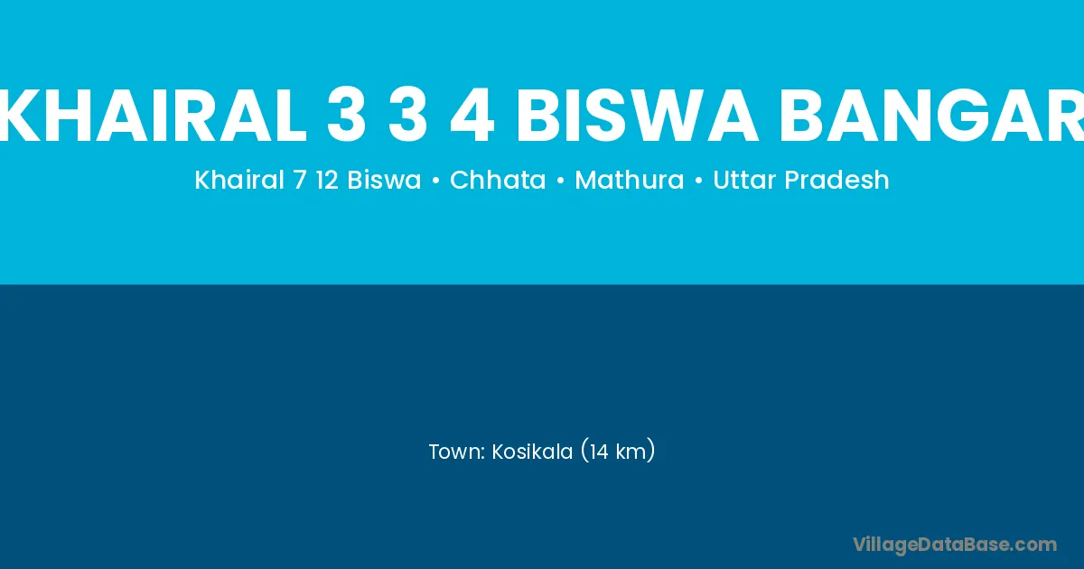 Kosikala (14 km) is the nearest town to Khairal 3 3 4 Biswa Bangar village for major economic activities and is located approximately 14 km away.
