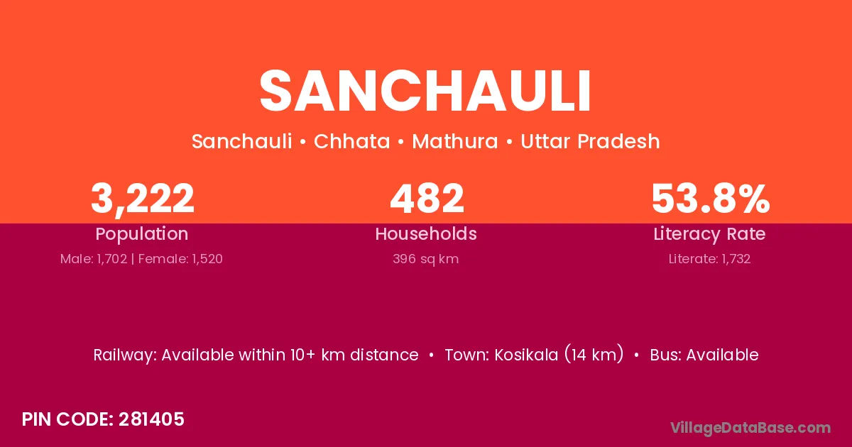 According to Census 2011 information, the village code of Sanchauli village is 281405.
