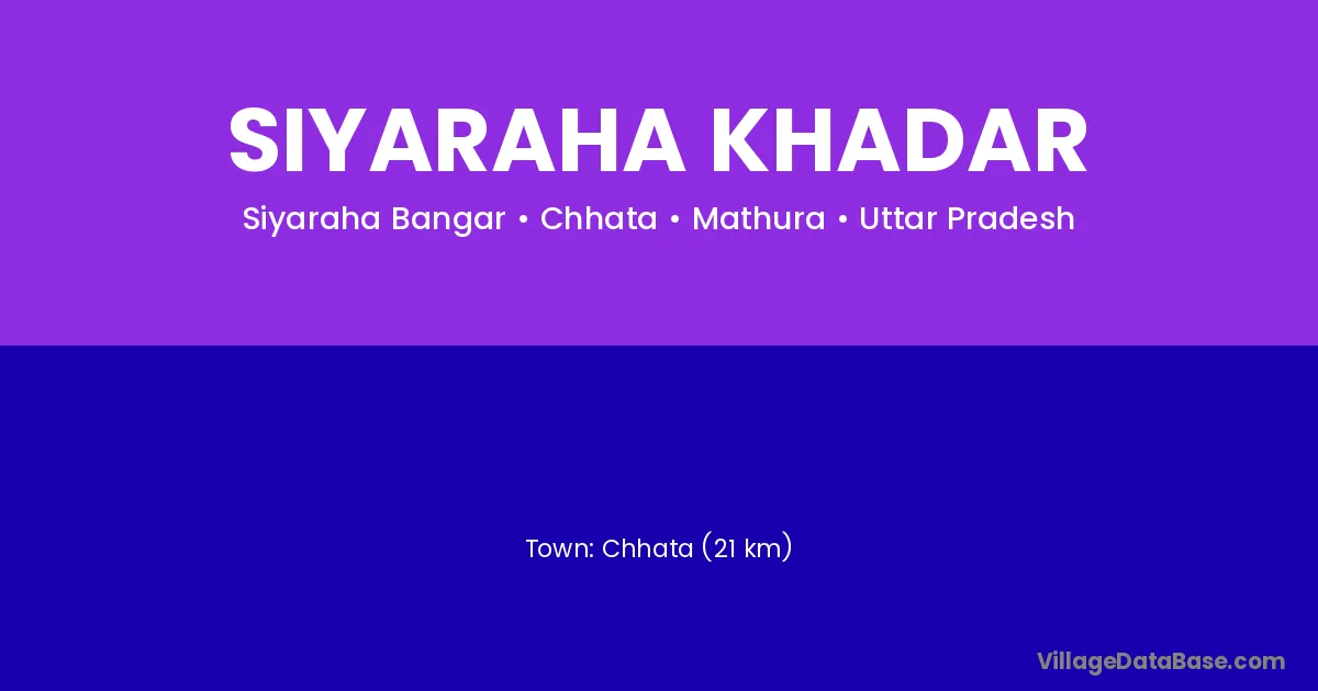 Chhata (21 km) is the nearest town to Siyaraha Khadar village for major economic activities and is located approximately 21 km away.