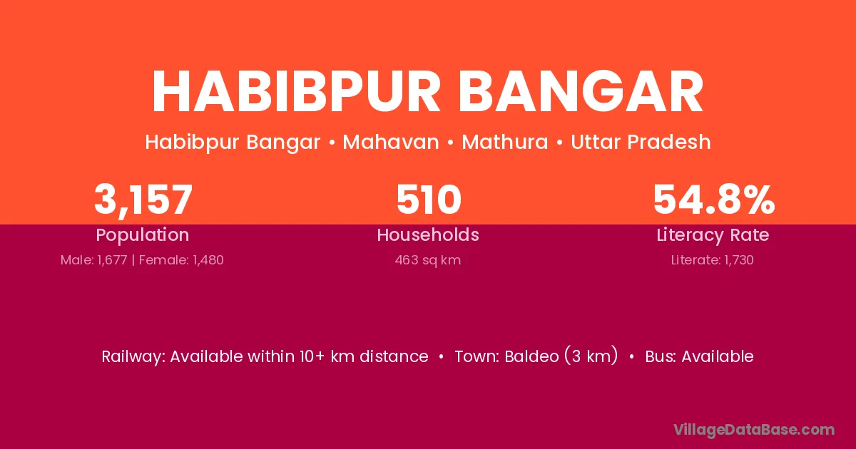 Baldeo (3 km) is the nearest town to Habibpur Bangar village for major economic activities and is located approximately 3 km away.