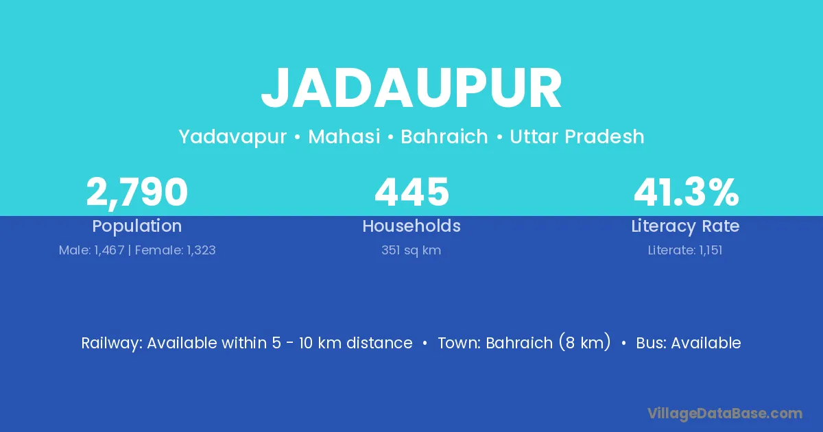 Mahavan (15 km) is the nearest town to Jadaupur village for major economic activities and is located approximately 15 km away.