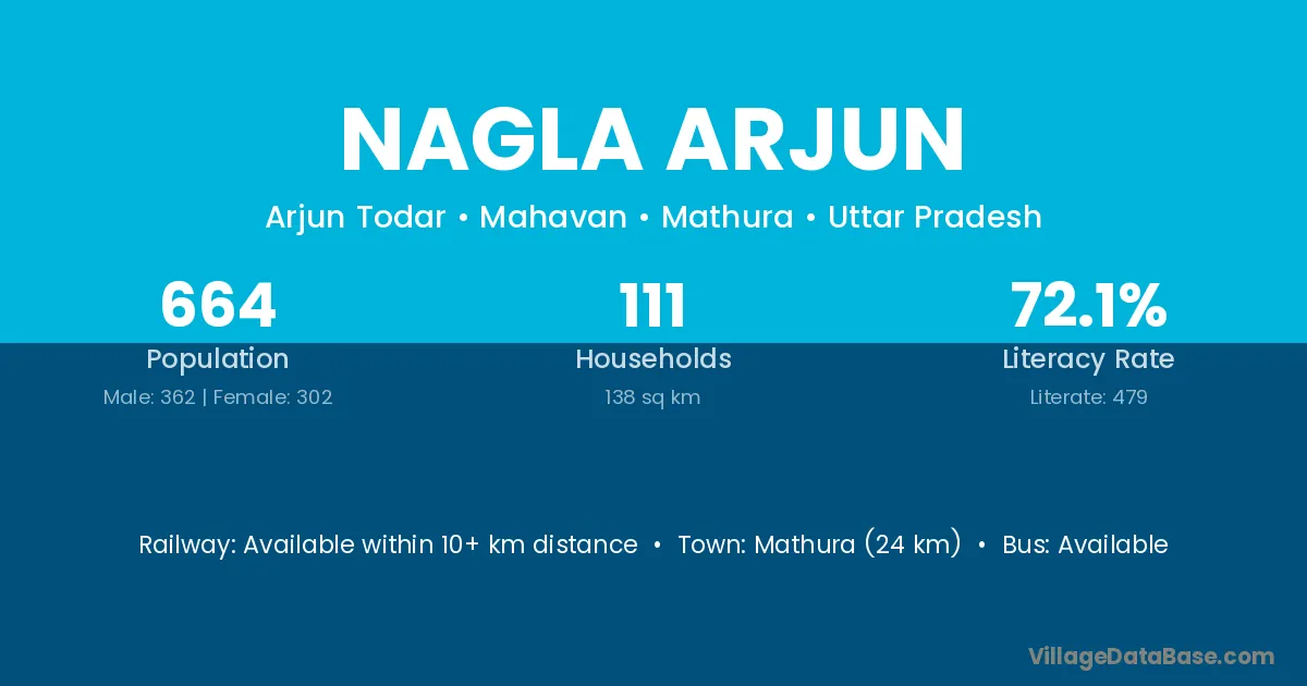 Mathura (24 km) is the nearest town to Nagla Arjun village for major economic activities and is located approximately 24 km away.