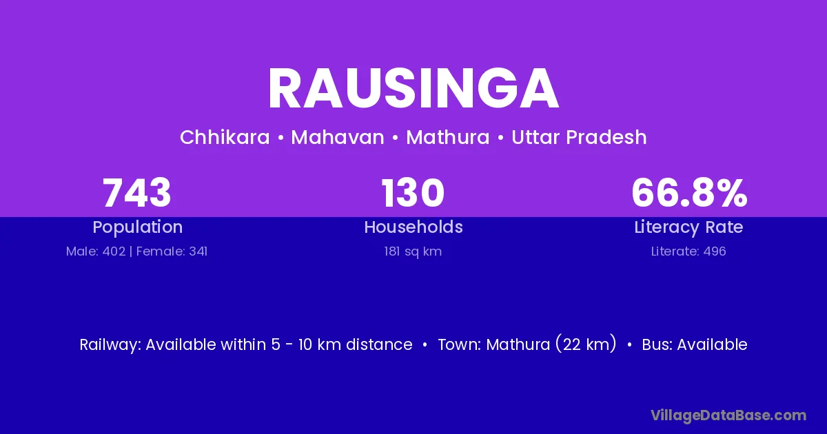 Mathura (22 km) is the nearest town to Rausinga village for major economic activities and is located approximately 22 km away.