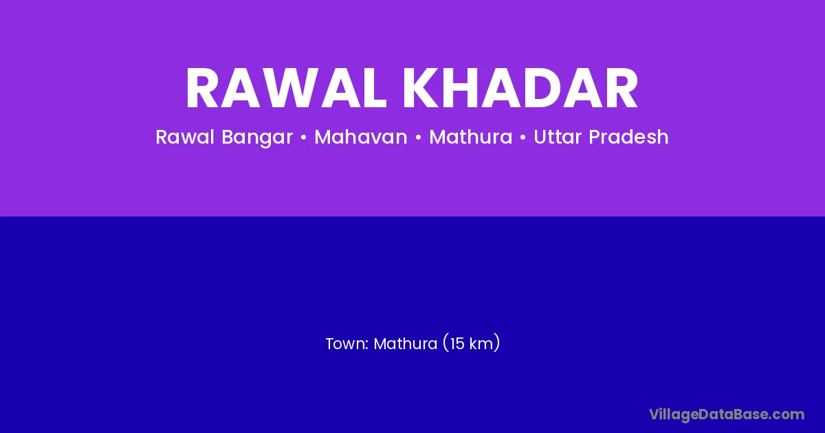 Mathura (15 km) is the nearest town to Rawal Khadar village for major economic activities and is located approximately 15 km away.