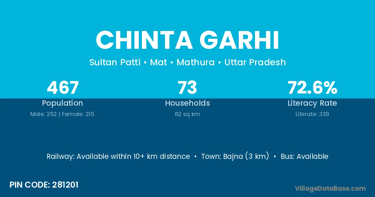 Bajna (3 km) is the nearest town to Chinta Garhi village for major economic activities and is located approximately 3 km away.