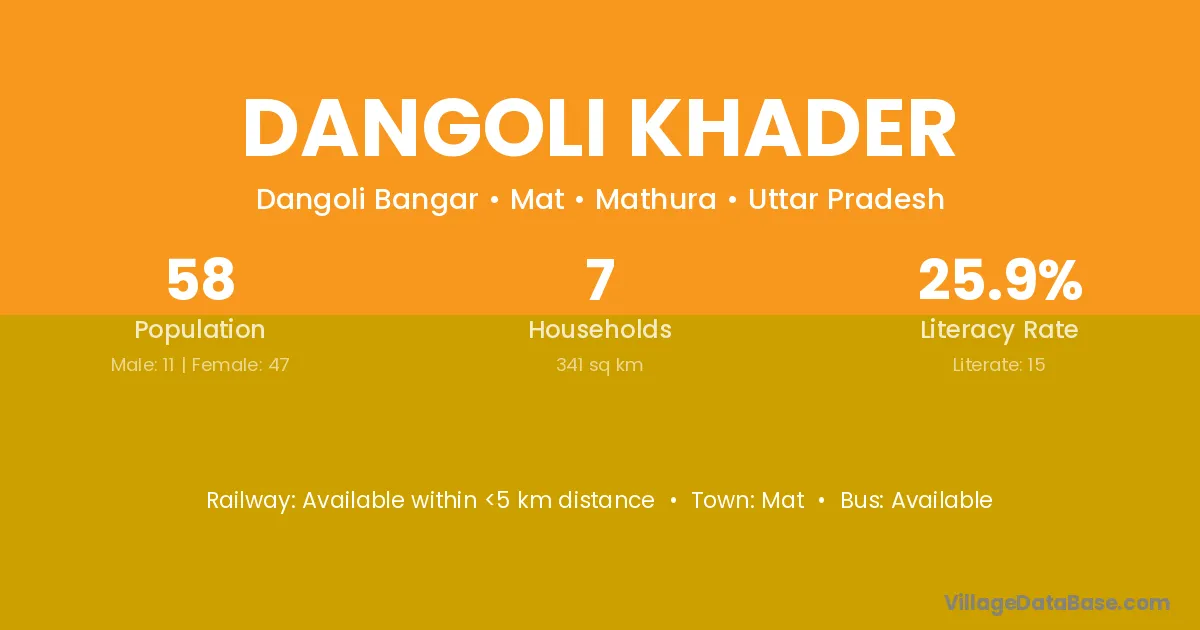Dangoli Khader village has a total population of 58 people, of which 11 are males and 47 are females.