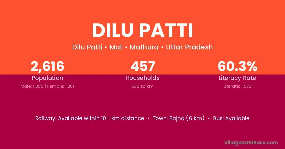 Bajna (6 km) is the nearest town to Dilu Patti village for major economic activities and is located approximately 6 km away.