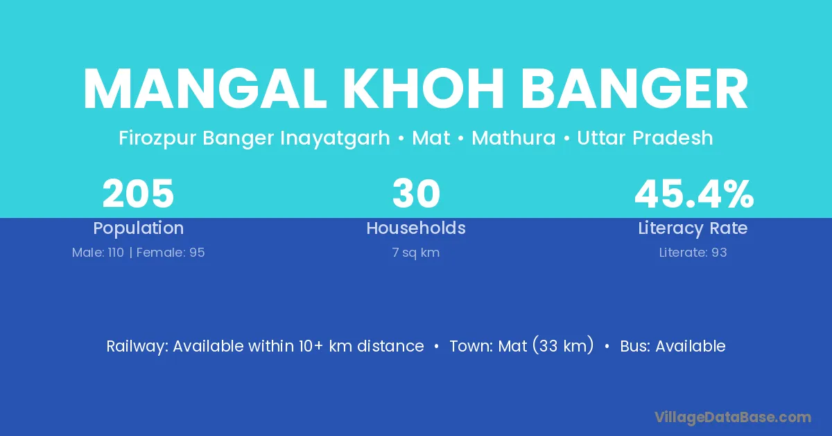 Mat (33 km) is the nearest town to Mangal Khoh Banger village for major economic activities and is located approximately 33 km away.